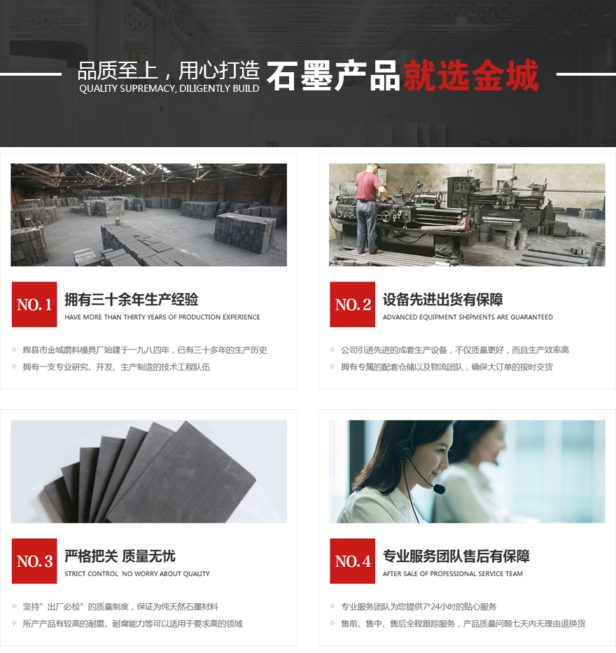 由于石墨的膨脹系數(shù)小,而且能耐急冷急熱的變化,可作為玻璃器皿的鑄模,使用石墨后,黑色金屬得到的鑄件尺寸精確,表面光潔,成品率高,不經(jīng)加工或稍作加工就可使用,因而節(jié)省了大量金屬。